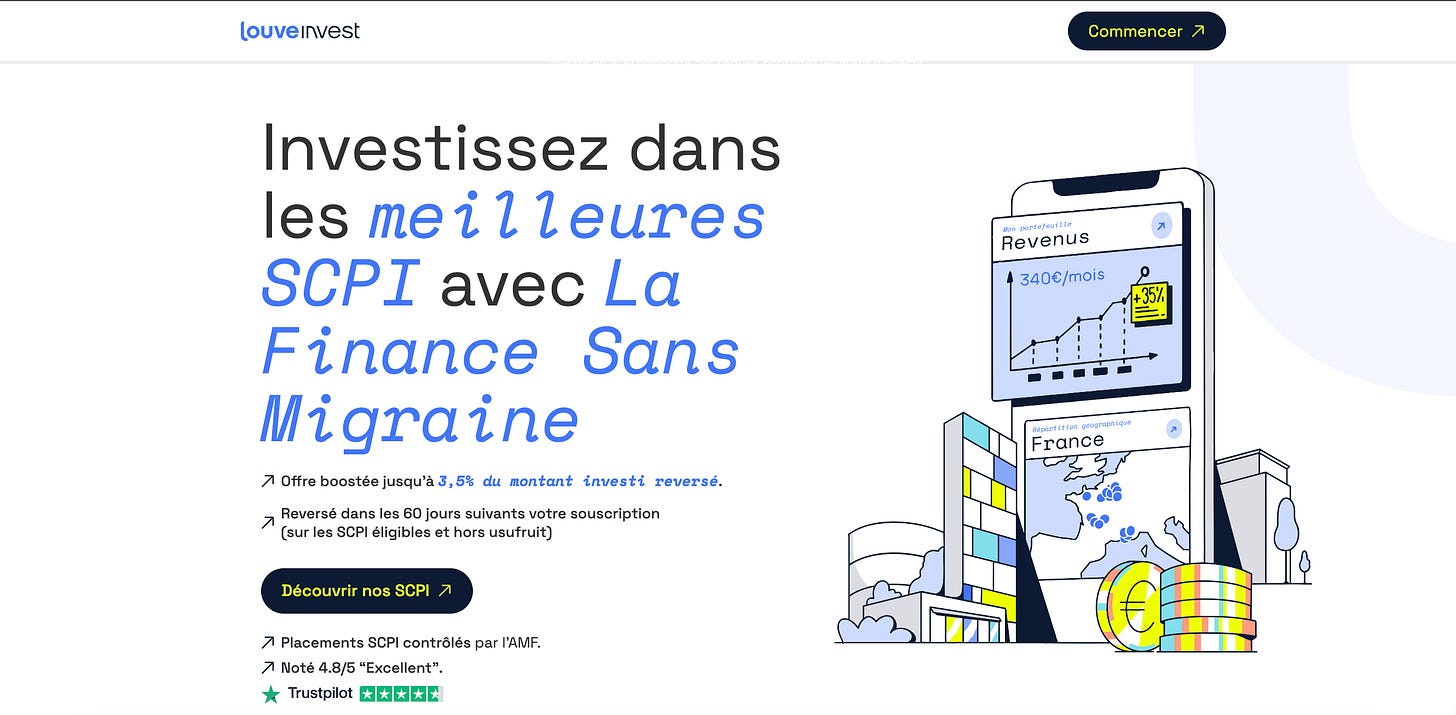 👉🏻 Tu veux investir dans l’immobilier locatif au travers de SCPI diversifiées, retrouve Louve Invest, un partenaire de confiance noté 4,8 ⭐️ sur Google.
